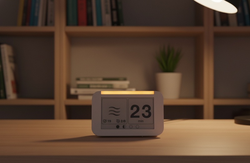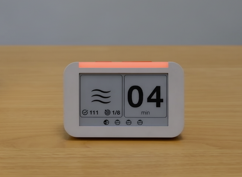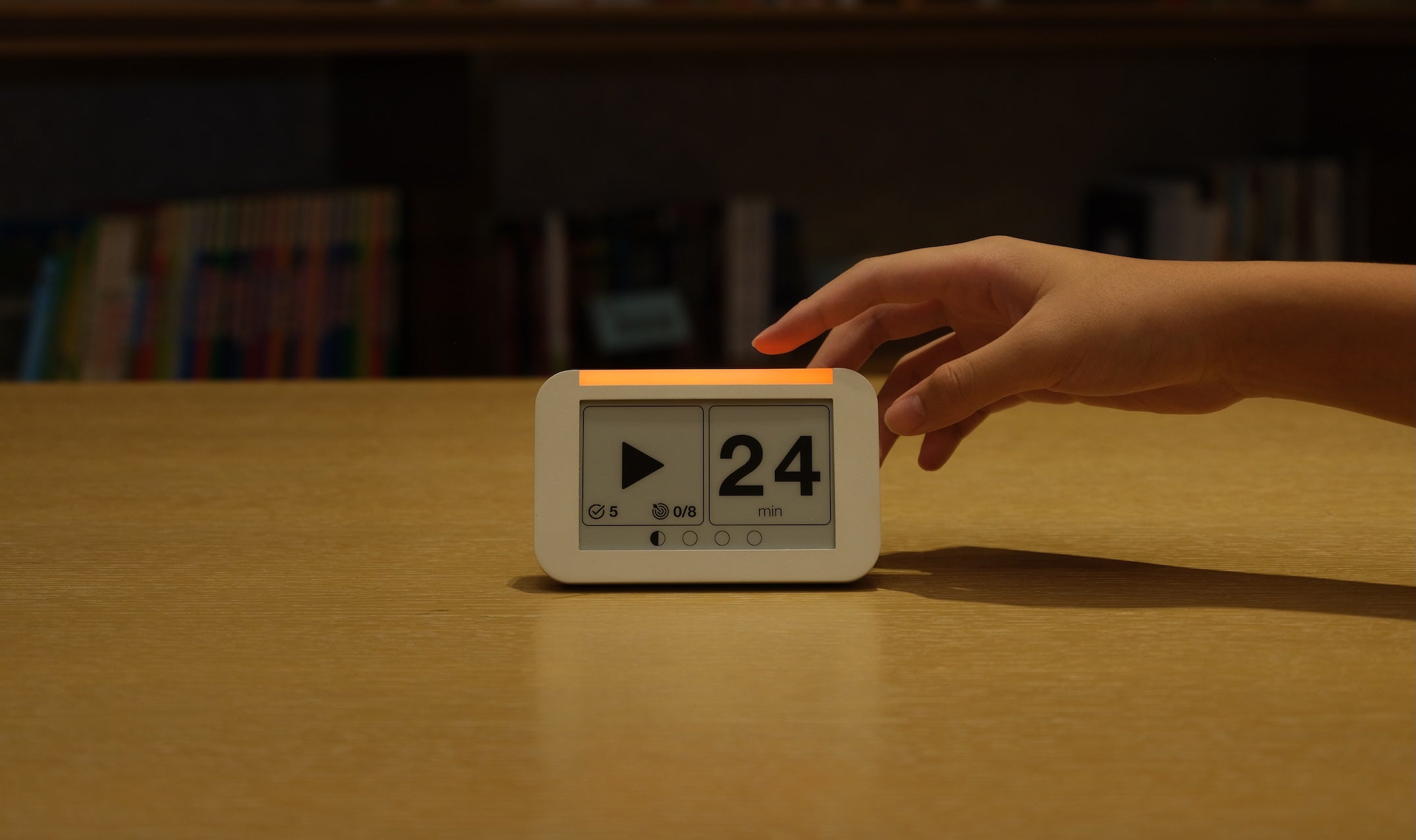 心流鐘使用不發光的電子紙螢幕,打造真正安靜、無光害的專注環境。